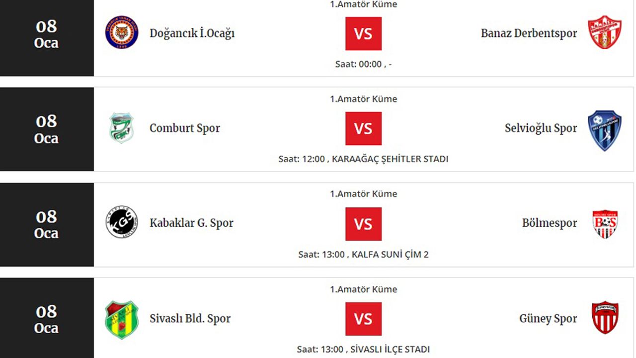 Amatör 1. Kümede bu hafta oynanacak maçlar şu şekilde.