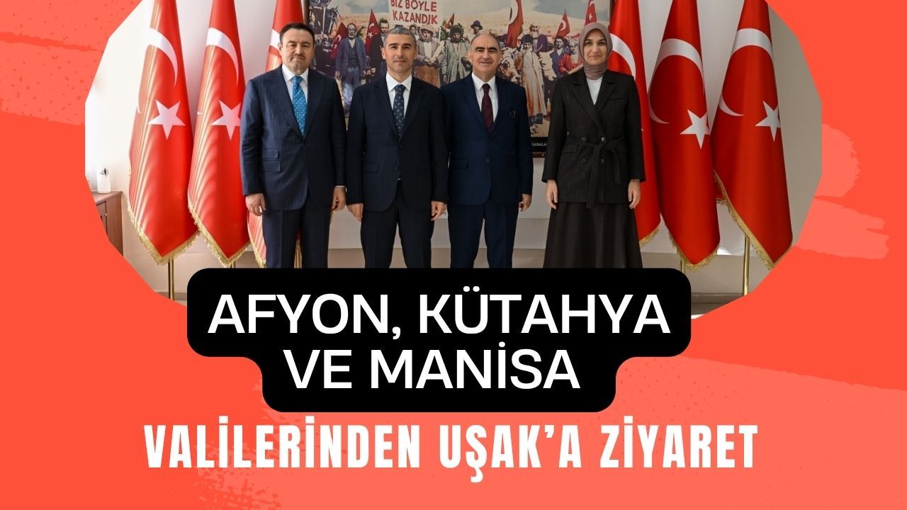 Zafer Kalkınma Ajansı Yönetim Kurulu Toplantısı için Uşak’ta bulunan Afyonkarahisar Valisi Doç. Dr. Kübra Güran Yiğitbaşı, Kütahya Valisi Musa Işın ve Manisa Valisi Vahdettin Özkan, Uşak Valisi Dr. Naci Aktaş’ı makamında ziyaret etti. Samimi bir atmosferde gerçekleşen ziyarette, bölgesel kalkınma çalışmaları üzerine görüş alışverişinde bulunuldu. Vali Aktaş, nazik ziyaretleri dolayısıyla mevkidaşlarına teşekkür ederek, TR33 Bölgesi illeri arasındaki dayanışmanın önemine dikkat çekti.