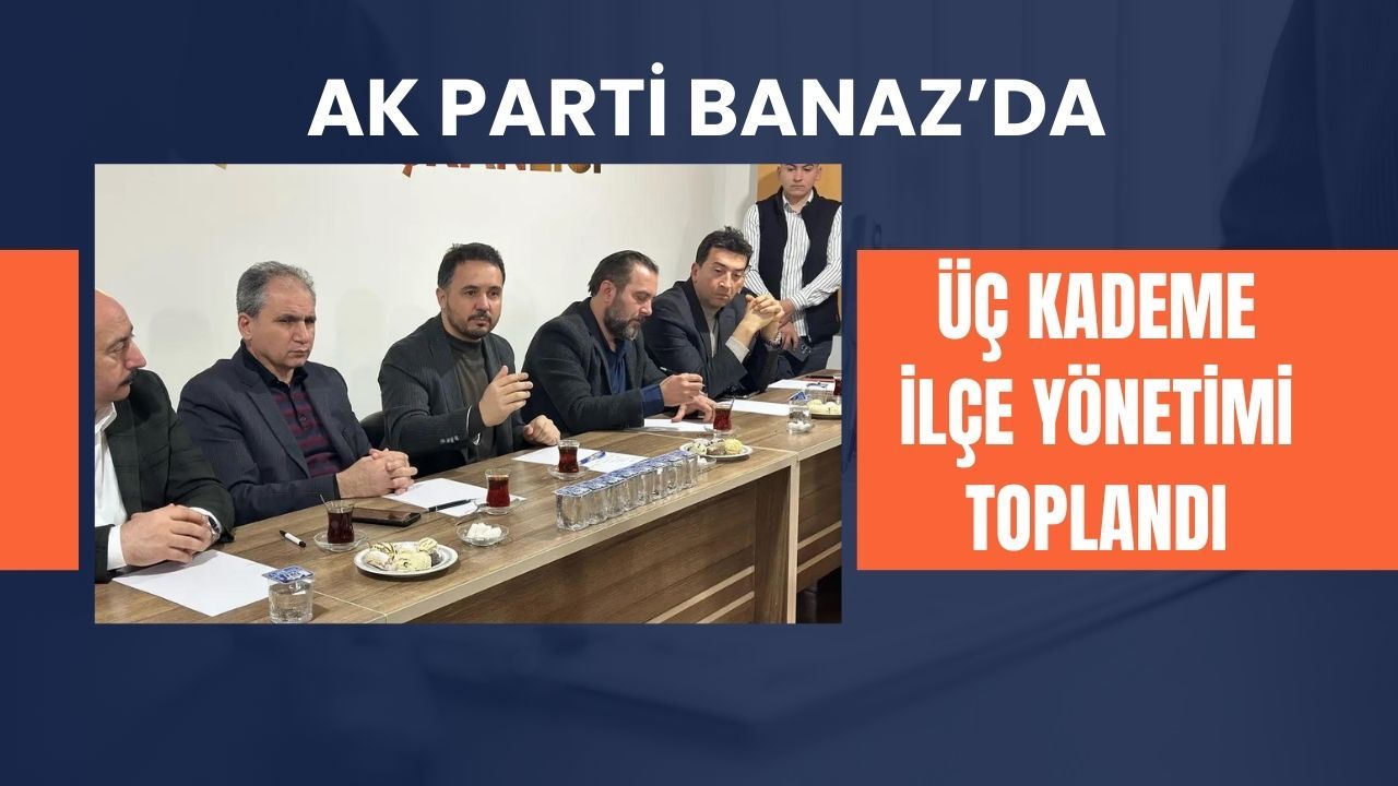 AK Parti Banaz İlçe Başkanlığı, üç kademe ilçe yönetimi toplantısına ev sahipliği yaptı. Toplantıya AK Parti Uşak İl Başkanı Himmet Yaşar, Banaz İlçe Başkanı Şevket Eyigör, Uşak Milletvekili İsmail Güneş, Banaz Belediye Başkanı Zafer Arpacı, İl Genel Meclisi Üyesi Nuri Meral, belediye meclis üyeleri Cengiz Akkaş ve Sefer Uysal ile teşkilat yöneticileri katıldı.