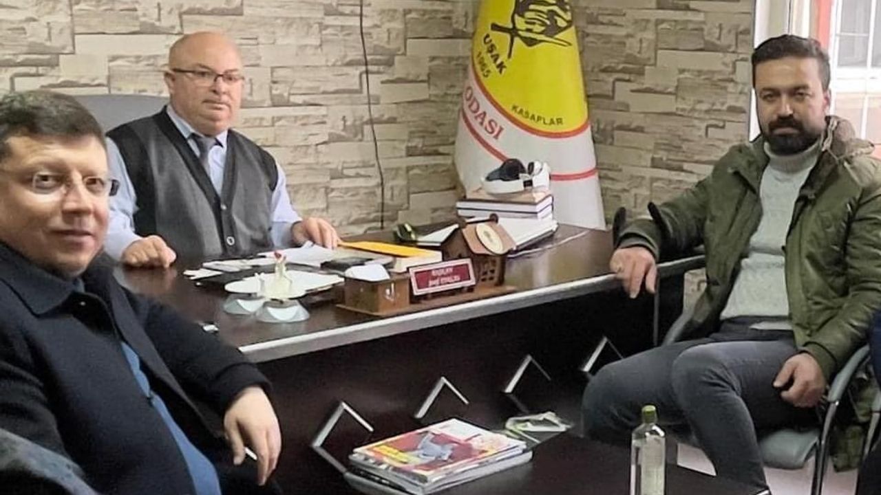 Uşak AK Parti İl Başkanı Fahrettin Tuğrul Aşçılar ve Lokantacılar Esnaf odası Başkanı şeref Parlas’ı ziyaret etti.. Ziyarette aşçı ve lokantacıların sorunları hakkında bilgi alan il başkanı Tuğrul ‘’Merkez İlçe Başkanımız Mehmet Bayar, Yönetim Kurulu Üyelerimiz ile Uşak Aşçılar ve Lokantacılar Esnaf Odası Başkanı Şeref Parlas’a hayırlı olsun ziyaretinde bulunduk.