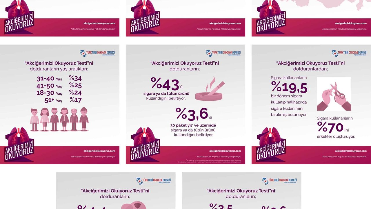 Sitede yer alan ve ziyaretçilere akciğer kanseri risk faktörlerinden hangilerine maruz kaldıklarına dair fikir sahibi olma imkânı sunan “Akciğerimizi Okuyoruz Testi”ni, bir yıl içerisinde 11 bine yakın kişi doldurdu. Türkiye Cumhuriyeti Sağlık Bakanlığı verilerine göre akciğer kanseri vakalarının yüzde 80'inin nedenini oluşturan tütün tüketim miktarının yanı sıra asbest ve ağır metaller gibi mesleki ve çevresel risk faktörlerine maruz kalma sıklığının da ölçüldüğü test çarpıcı bulgular ortaya koydu.
