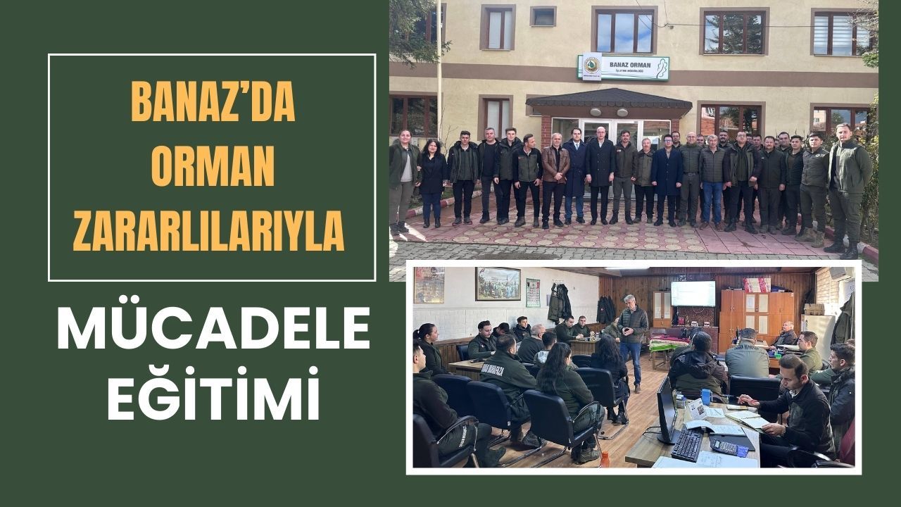 Banaz Orman İşletme Müdürlüğü, 2026 yılı Ormanların Korunması ve Orman Zararlıları ile Mücadele programı çerçevesinde eğitim çalışması düzenledi. Banaz’daki toplantıya adli ve teknik birim temsilcileri de katıldı. Eğitim programında, Banaz Cumhuriyet Başsavcısı ile Denizli Orman Bölge Müdürlüğü Orman Zararlılarıyla Mücadele Şube Müdürü tarafından orman işletme şefleri ve Orman Muhafaza Memurlarına yönelik bilgilendirme yapıldı. Özellikle kaçak kesim, biyotik ve abiyotik zararlılarla mücadele yöntemleri ile hukuki süreçler ele alındı.