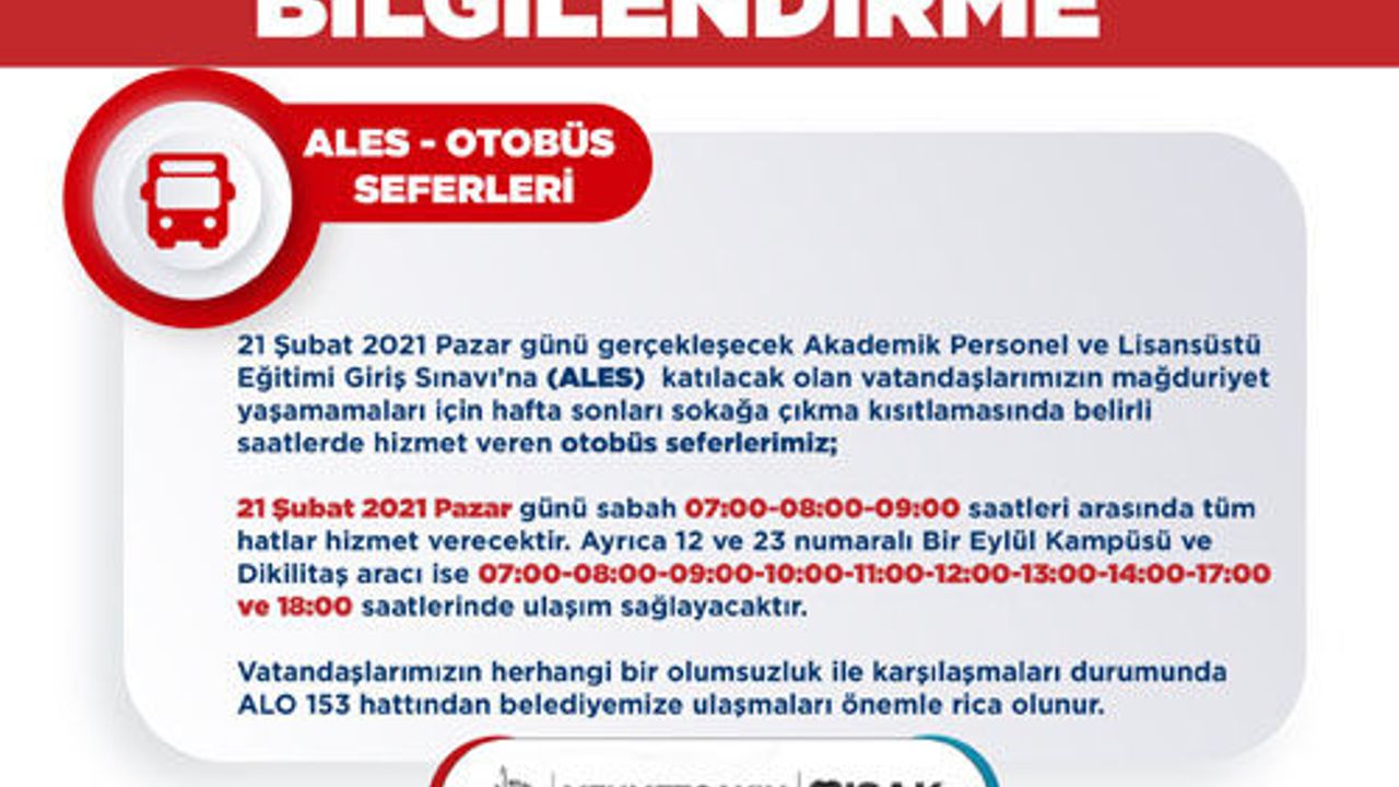 Belediyemizden Ales Otobüs Seferleriyle ilgili açıklama yapıldı..