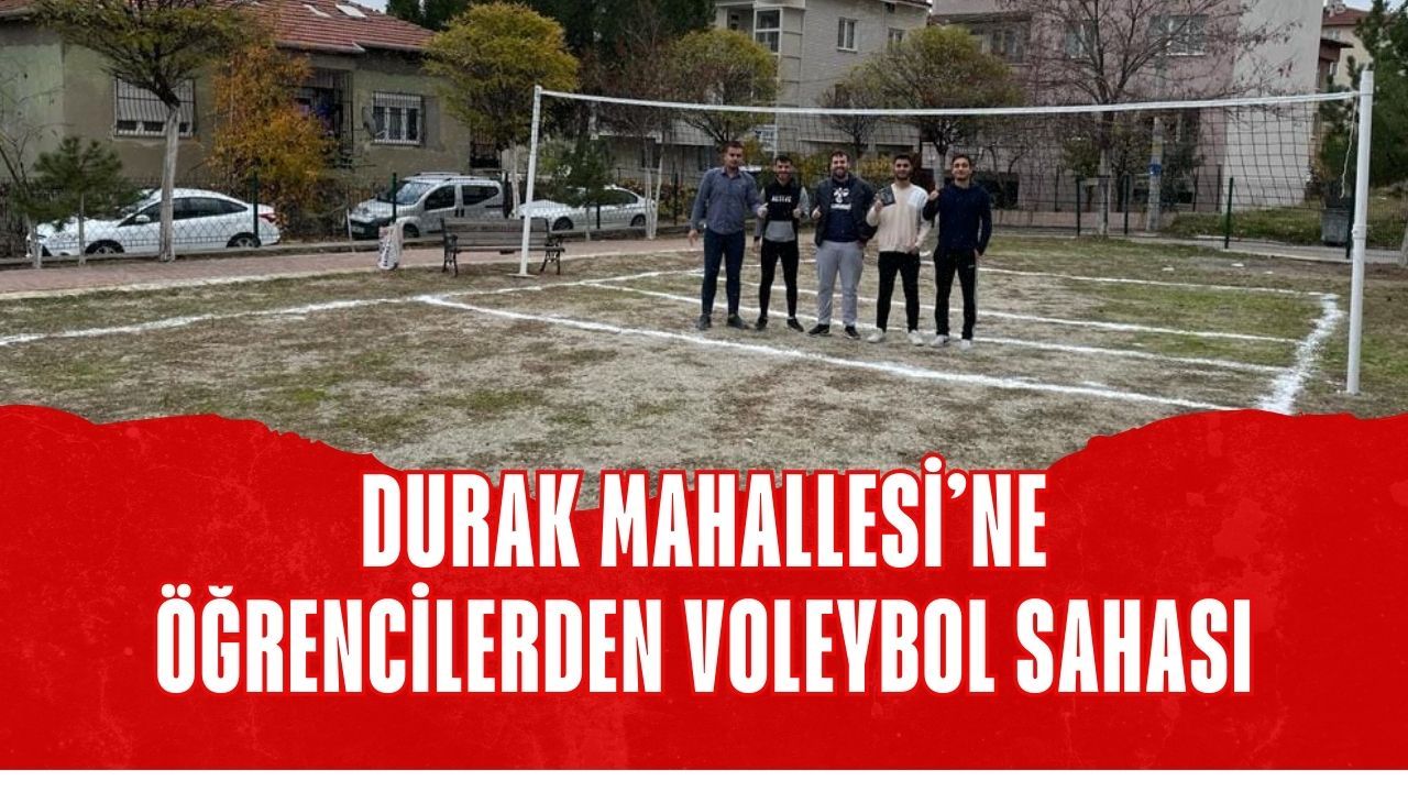 Uşak Üniversitesi öğrencileri Umut Turak, Oğuzhan Gürdal, Furkan Salman, Bahadır Çelik ve Mahsum Gezer, ders kapsamında yürüttükleri “Topluma Hizmet Uygulamaları Projesi” için Durak Mahallesi’ni seçti. Öğrenciler, muhtarlığın desteğiyle park içinde uzun süredir atıl durumda bulunan alanı düzenleyerek mahalle sakinlerinin kullanımına uygun bir voleybol sahasına dönüştürdü.