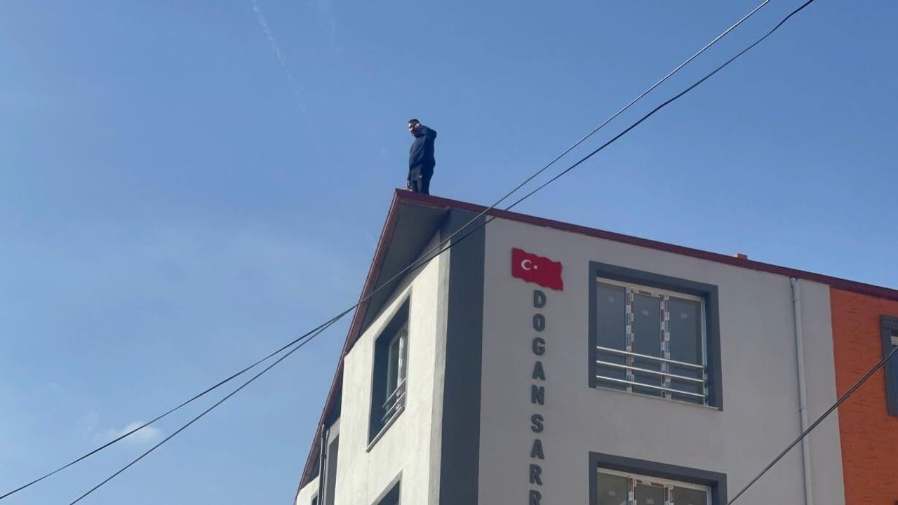 Olay yerine derhal itfaiye, 112 Acil ve polis ekipleri sevk edildi. Yaklaşık 1 saat kadar binanı üzerinde kalan C.K’nın ikna edip aşağı inmesiyle gerilim dolu anlar sona erdi. (MELİKE PANCARCI)