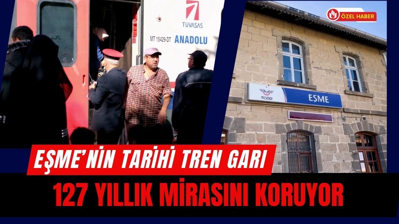 Eşme Tren Garı’nın geçmişi 20 Aralık 1897’ye uzanıyor. İzmir/Basmane – Manisa – Afyonkarahisar hattı üzerinde inşa edilen gar, o dönem SCP adlı şirket tarafından “Elvanlar İstasyonu” adıyla hizmete açıldı. Demiryollarının Anadolu’da hızla yayılmaya başladığı dönemde inşa edilen yapı, bölgenin ticaret ve ulaşım ağının gelişmesinde önemli bir rol oynadı.