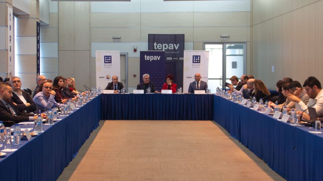 AB tarafından fonlanan Avrupa Öğrenme Deneyimi Platformu (EULEP) Projesi’nin değerlendirme toplantısı, 27 Kasım 2025’te Ankara’da Türkiye Ekonomi Politikaları Araştırma Vakfı’nda gerçekleştirildi. TOBB, TEPAV ve TOBB ETÜ iş birliğiyle düzenlenen toplantı, ilgili kurum ve kuruluşların yoğun katılımıyla gerçekleşti. Açılış konuşmaları TEPAV Kurucu Direktörü Prof. Dr. Güven Sak ve TOBB Reel Sektör Ar-Ge ve Uygulama Dairesi Başkanı M. Kemal Günay tarafından yapıldı. Günay, EULEP Projesinin EUROCHAMBRES liderliğinde yürütüldüğünü vurgulayarak projenin Türkiye’de TOBB koordinasyonuyla ilerlediğini ifade etti.