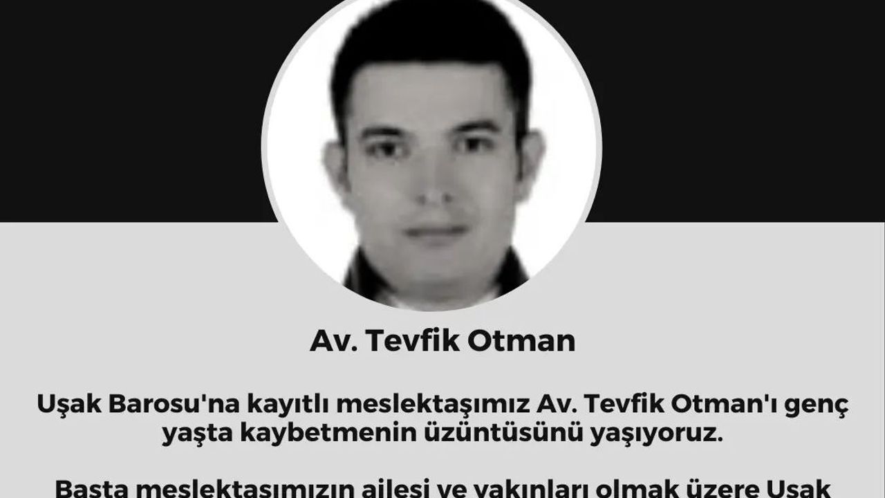 Uşak Barosu avukatları 3 aylık meslektaşları için gözyaşı döküyor. Avukatlık diplomasını 3 ay önce alan genç Avukat Tevfik Otman girdiği bunalım sonucu yaşamına son verdi.