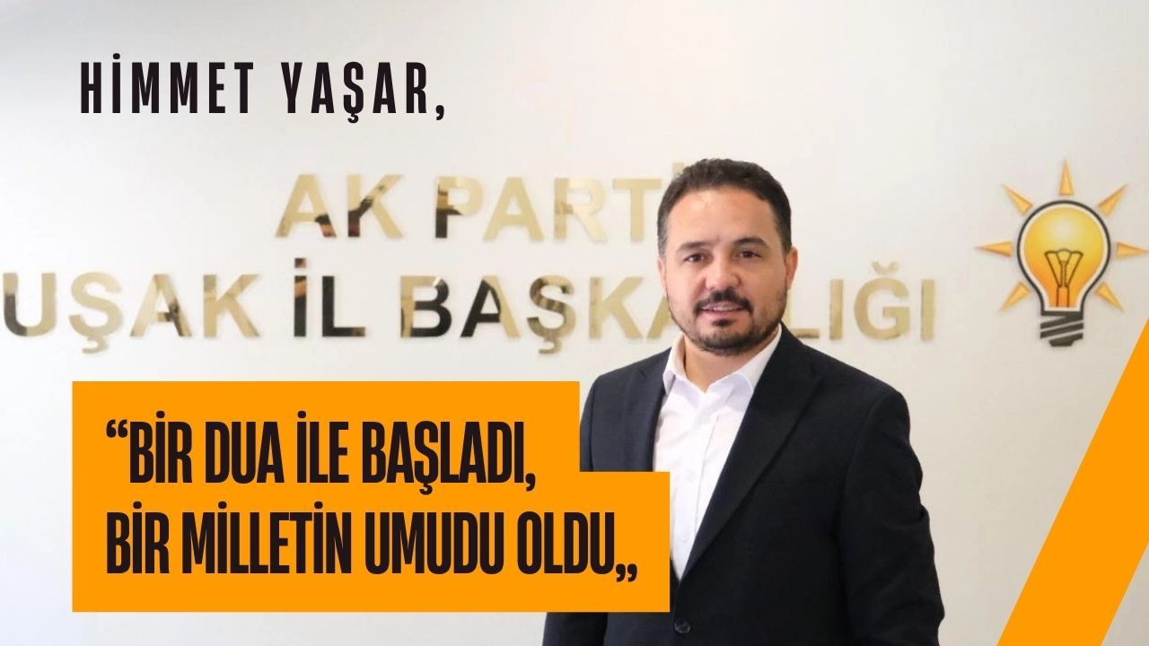 AK Parti’nin kuruluşunun 23. yıl dönümü dolayısıyla bir açıklama yapan AK Parti Uşak İl Başkanı Himmet Yaşar, partinin Türkiye siyasetinde bıraktığı derin izlere vurgu yaptı. Yaşar, “Bir dua ile başladı, bir milletin umudu oldu. 23 yıl önce bu topraklarda bir inanç filizlendi,” sözleriyle açıklamasına başladı.