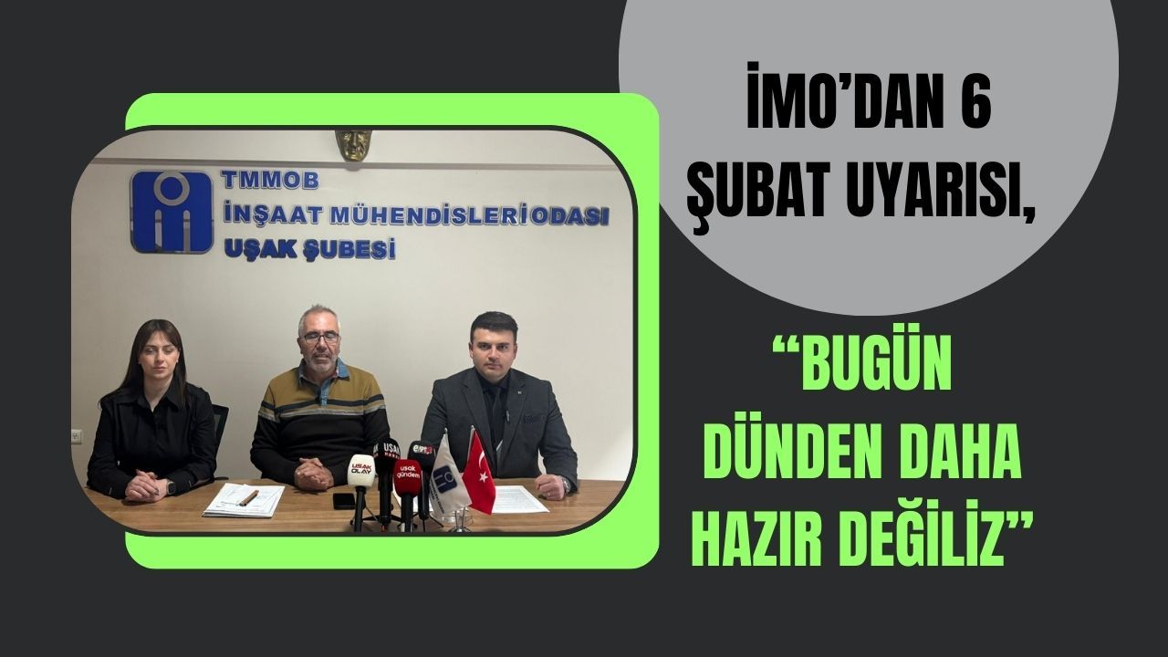 6 Şubat Kahramanmaraş merkezli depremlerin yıl dönümünde, TMMOB İnşaat Mühendisleri Odası tarafından Türkiye genelinde eşzamanlı basın açıklaması gerçekleştirildi. Uşak’taki açıklamayı, İMO Uşak Şube Yönetim Kurulu Üyesi Halil İbrahim Kızıldağ okudu. Açıklama öncesinde konuşan İMO Uşak Şube Başkanı Ümit Alp, 6 Şubat depremlerinin, 17 Ağustos 1999 depreminden gerekli derslerin alınmadığını bir kez daha ortaya koyduğunu vurguladı. Alp, yaşanan büyük yıkımın doğa olayından çok insan eliyle oluşan hataların sonucu olduğunu ifade etti.