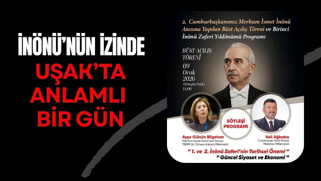Uşak, Türkiye Cumhuriyeti’nin ikinci Cumhurbaşkanı İsmet İnönü’yü kapsayıcı bir programla anmaya hazırlanıyor. İnönü’nün anısına yapılan büst açılış töreni ile Birinci İnönü Zaferi’nin yıl dönümü, 9 Ocak 2026 Cuma günü düzenlenecek etkinliklerle kamuoyuna taşınacak.