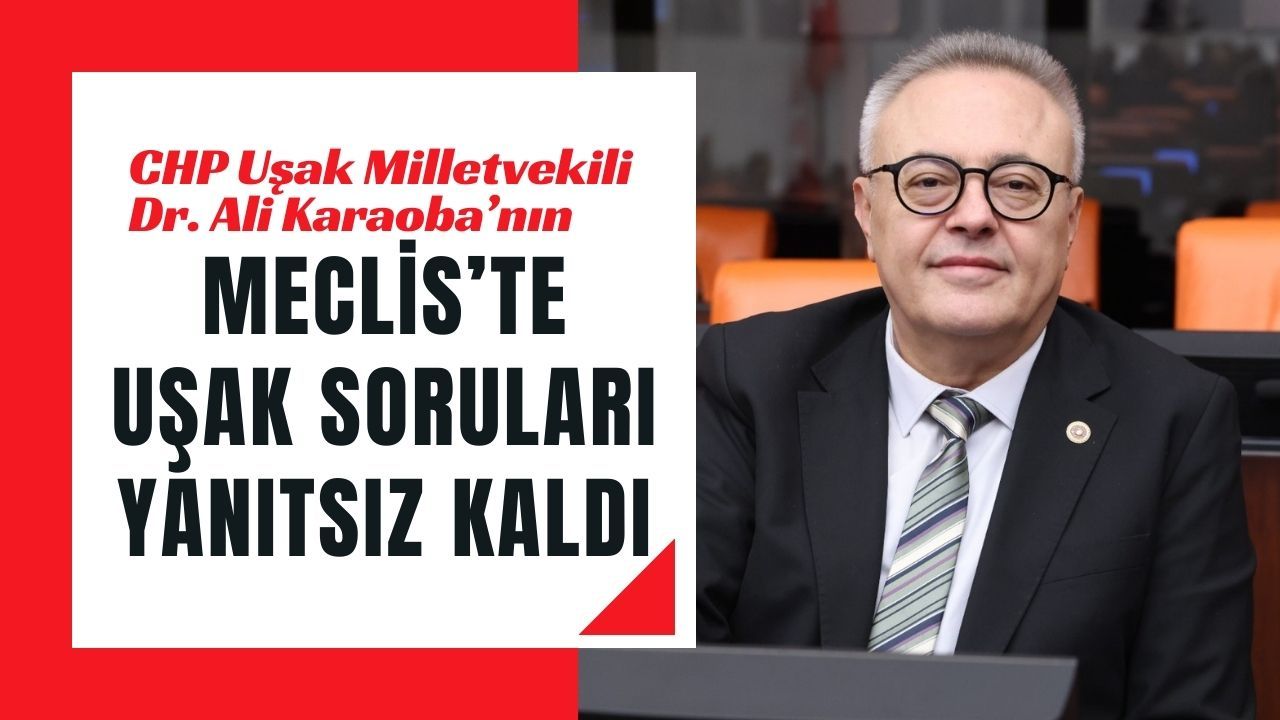 Cumhuriyet Halk Partisi Uşak Milletvekili Op. Dr. Ali Karaoba, TBMM Plan ve Bütçe Görüşmeleri sırasında Tarım ve Orman Bakanı ile Çevre, Şehircilik ve İklim Değişikliği Bakanına yönelttiği soruların yanıtsız kalmasını Meclis kürsüsünden sert ifadelerle eleştirdi. Karaoba, Uşak’ın yıllardır çözülemeyen su, tarım, çevre ve kamu yatırımları sorunlarının ısrarla görmezden gelindiğini söyledi.