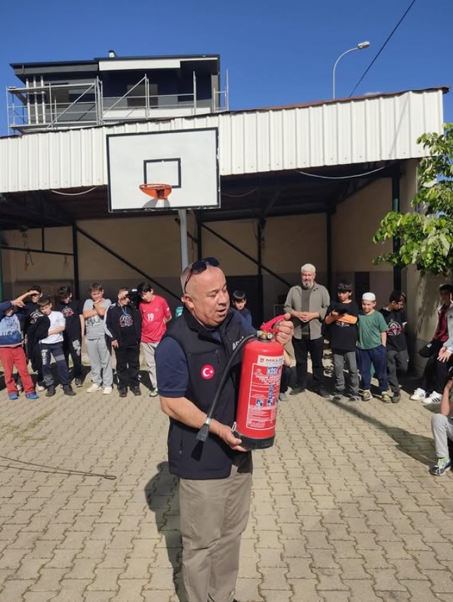 Uşak İl Afet ve Acil Durum Müdürlüğü (AFAD) tarafından, 2025 yılı eğitim ve tatbikat faaliyetleri kapsamında, Uşak Müftülüğü Fatih Yatılı Erkek Kur’an Kursu öğrencilerine yönelik “Afet Farkındalık ve Yangın Farkındalık Eğitimi” düzenlendi. Kurs binasında gerçekleştirilen eğitimde öğrencilere; afetlere karşı hazırlıklı olma bilinci, yangın anında doğru davranış şekilleri, temel tahliye yöntemleri ve afet anında iletişim kurma konularında bilgiler aktarıldı. Ayrıca, yangın söndürme cihazlarının nasıl kullanılacağına dair uygulamalı anlatımlar da yapıldı.