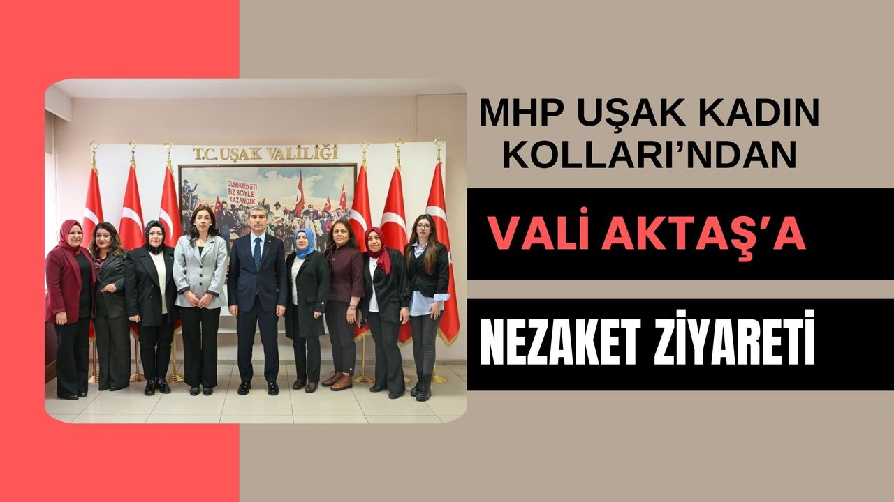 Milliyetçi Hareket Partisi Uşak Kadın Kolları Başkanı Meltem Görenekli ve yönetim kurulu üyeleri, Uşak Valisi Dr. Naci Aktaş’a bir nezaket ziyareti gerçekleştirdi. Ziyarette, kentte yürütülen çalışmalar ve toplumsal konulara dair karşılıklı iyi niyet mesajları paylaşıldı. Görüşmede, kadınların sosyal hayatta daha görünür olması ve yerel ölçekte yürütülen çalışmaların güçlendirilmesi başlıkları öne çıktı. Kadın Kolları heyeti, Uşak’ta sürdürülen faaliyetlere dair değerlendirmelerde bulunurken, kamu kurumlarıyla kurulan diyalogun önemine dikkat çekti. Ziyaretin ardından yapılan açıklamada, nazik ev sahipliği ve gösterilen ilgi dolayısıyla teşekkür iletildi.