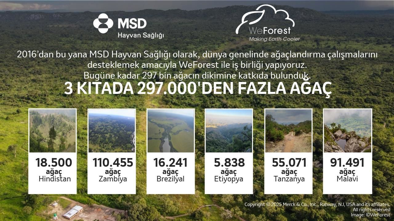 MSD Hayvan Sağlığı, çevresel restorasyon alanında WeForest ile yürüttüğü 10 yıllık iş birliğini, küresel çapta etkisi büyüyen “Ağaç Dikim İnisiyatifi” ile taçlandırdı. SPHEREON® formatında geliştirilen kanatlı aşı teknolojileri ve balık ürünleri satışlarından sağlanan bağışlarla desteklenen program, üç kıtada toplam 297 bin ağacın toprakla buluşmasını sağladı.