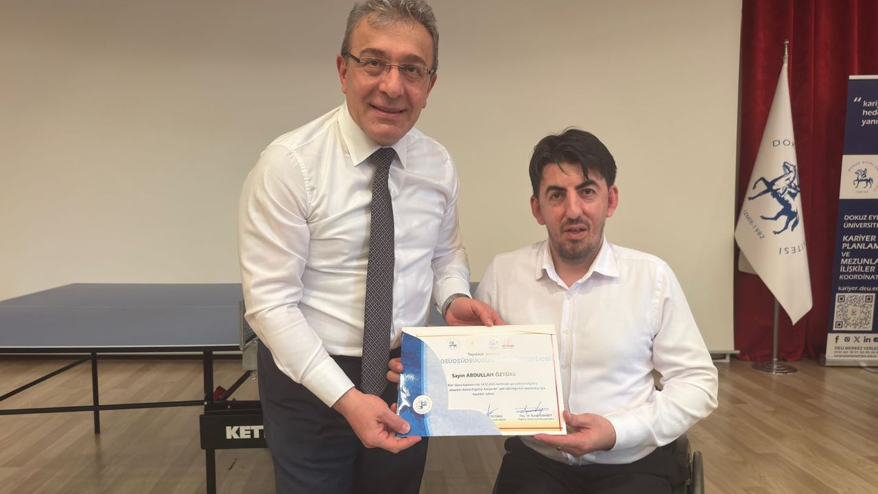 Panelde konuşan DEÜ Rektörü Prof. Dr. Bayram Yılmaz ise üniversite olarak her bireye eşit eğitim anlayışıyla hizmet verdiklerini belirtti. Engelsiz üniversite yaklaşımının yalnızca fiziki düzenlemelerle sınırlı olmadığını ifade eden Yılmaz, akademik süreçlerden kampüs yaşamına kadar tüm alanlarda erişilebilirliği esas aldıklarını söyledi. Yılmaz ayrıca, Dokuz Eylül Üniversitesi’nin Yükseköğretim Kurulu tarafından verilen Engelsiz Üniversiteler Bayrak Ödülü’ne bir kez daha layık görülmesinden duydukları gururu paylaştı ve üniversitenin son beş yıldır Türkiye genelinde ilk üçte yer aldığını aktardı. Programın sonunda Rektör Prof. Dr. Bayram Yılmaz ile milli sporcu Abdullah Öztürk, salonda kısa bir gösteri maçı yaparak etkinliği renkli anlarla tamamladı. (Kaynak: AA)
