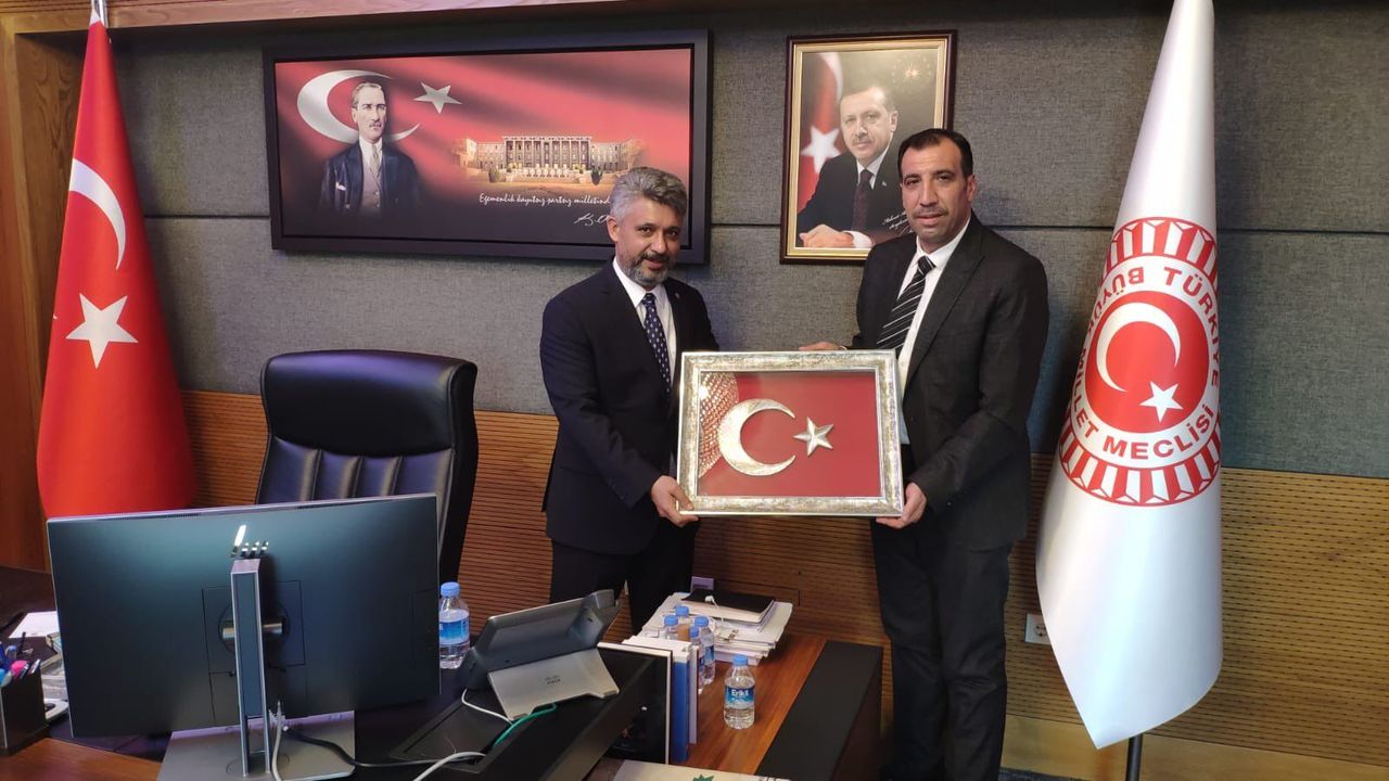 AK Parti Uşak Milletvekili Mehmet Altay’ın meclisteki odasında ziyaretçileri vardı.. Kilis ilimizin Polateli Belediye Başkanı Hakkı Çelik milletvekili Mehmet Altay’a bu ziyaretinde Türk Bayrağı hediye etti..
