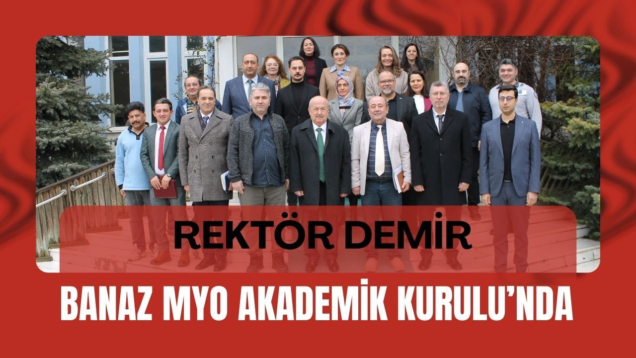 Uşak Üniversitesi Rektörü Prof. Dr. Ahmet Demir, Banaz Meslek Yüksekokulu tarafından düzenlenen Akademik Kurul Toplantısı’na katıldı. Banaz’daki programda eğitim-öğretim faaliyetleri ve yeni dönem planlamaları kapsamlı şekilde ele alındı.