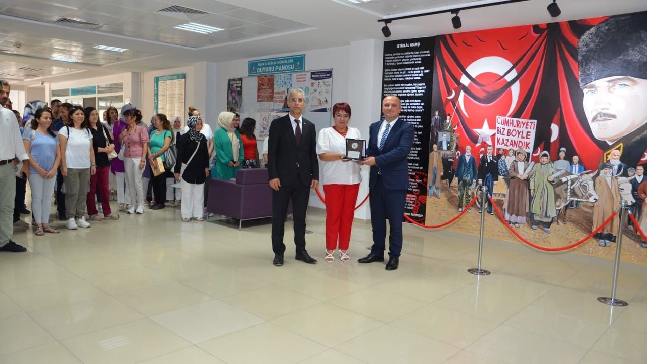 İl Sağlık Müdürlüğü personeli Gülümser AKBAY‘ ın Sağlıklı Hayat Merkezi Çocuk Gelişim odası duvarlarına yaptığı resimlerinden sonra, Gülümser hanım Müdürlük Atatürk köşesine, 1 Eylül Uşak‘ın 100. kurtuluş yıl dönümü dolayısıyla Uşak’ta 1933 yılında çekilmiş ikonik fotoğrafı da resimledi. İl Sağlık Müdürü Op. Dr. Mehmet AKDAĞ, kendisine verdiği emekten dolayı teşekkür ederek plaket verdi. (SERKAN KARAYOL)