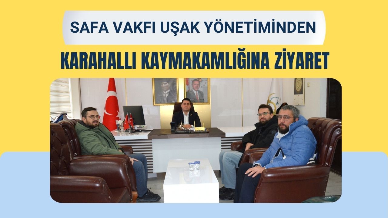 Karahallı Kaymakamlığı, SAFA Vakfı Uşak İl Başkanı Ahmet Özdemir ve yönetim kurulu üyelerini ağırladı. Heyet, Kaymakam Ramazan Çelebi’yi makamında ziyaret etti. Gerçekleşen ziyarette, sivil toplum kuruluşları ile kamu kurumları arasındaki iletişimin güçlendirilmesine yönelik değerlendirmelerde bulunuldu. Karahallı’da yürütülen sosyal ve toplumsal çalışmalar hakkında karşılıklı görüş alışverişi yapıldı.