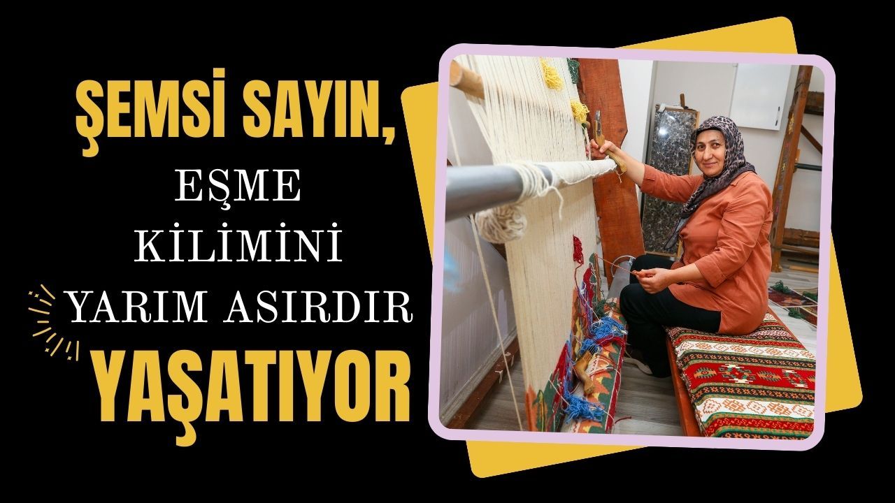 Eşme kiliminin yaşaması için çalışan Şemsi Sayın, bugün yetiştirdiği öğrencilerle birlikte ilçenin kültürel kimliğini koruyan en önemli isimlerden biri. Sağlığı elverdiği sürece dokumaya devam edeceğini söyleyen usta, yeni nesillerin de bu geleneği sahiplenmesini umut ediyor. (Kaynak : AA)