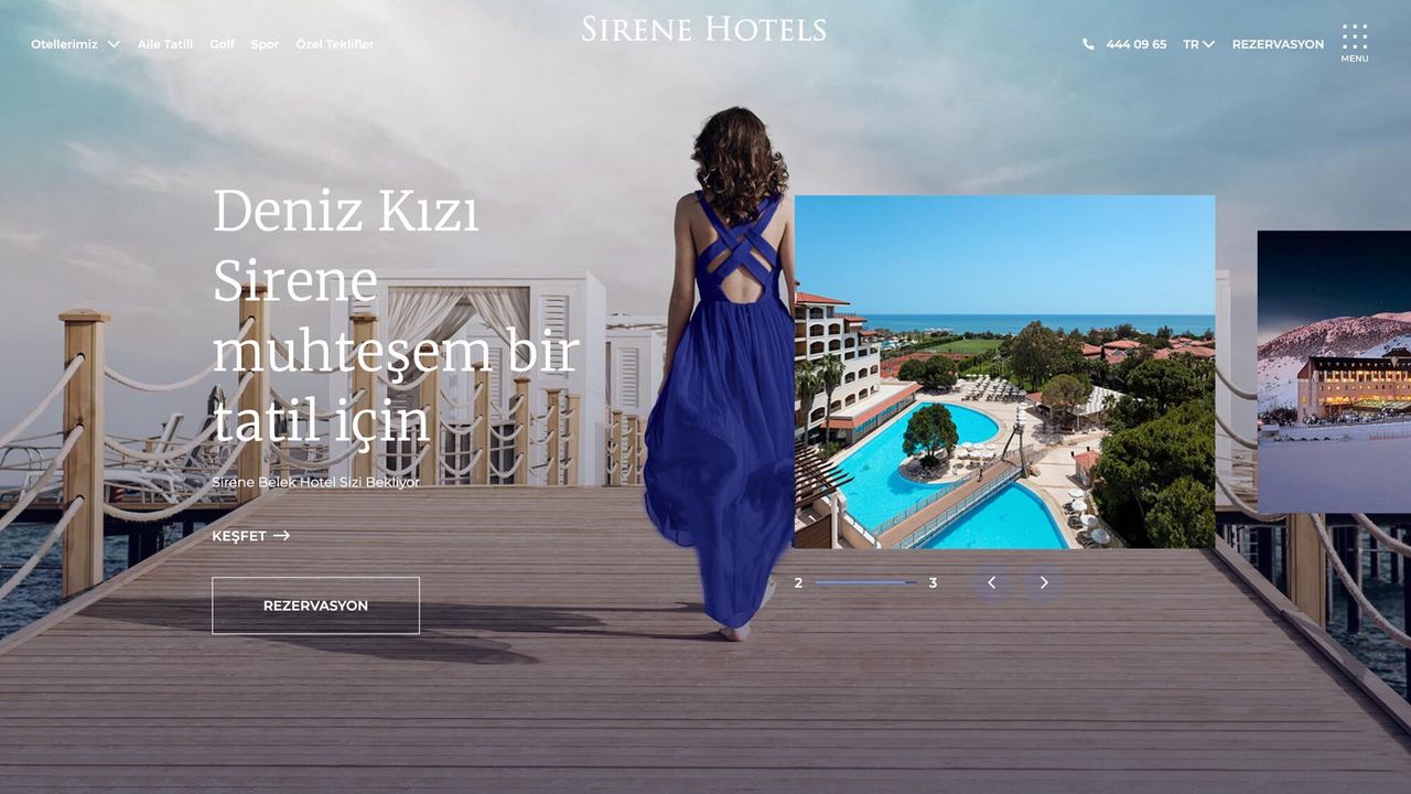 . Sirene Hotels markasının ihtiyacına göre, özgün, estetik ve kullanıcı dostu ara yüz tasarımı ile kullanıcılardan tam not aldı.