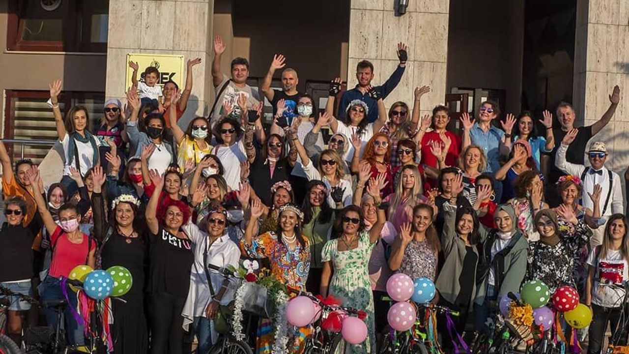 Bisikletlerine “Süslü kadınlar” yazılı pankart asan ve meydanda müzik eşliğinde dans eden kadınlara, çevredekiler de destek verdi. Süslü Kadınlar, 15 Temmuz Şehitleri Meydanı’ndan Atapark’a kadar pedal çevirerek, trafik sıkışıklığının azaldığı ve çevreci bir dünya bilinci için farkındalık oluşturdular.