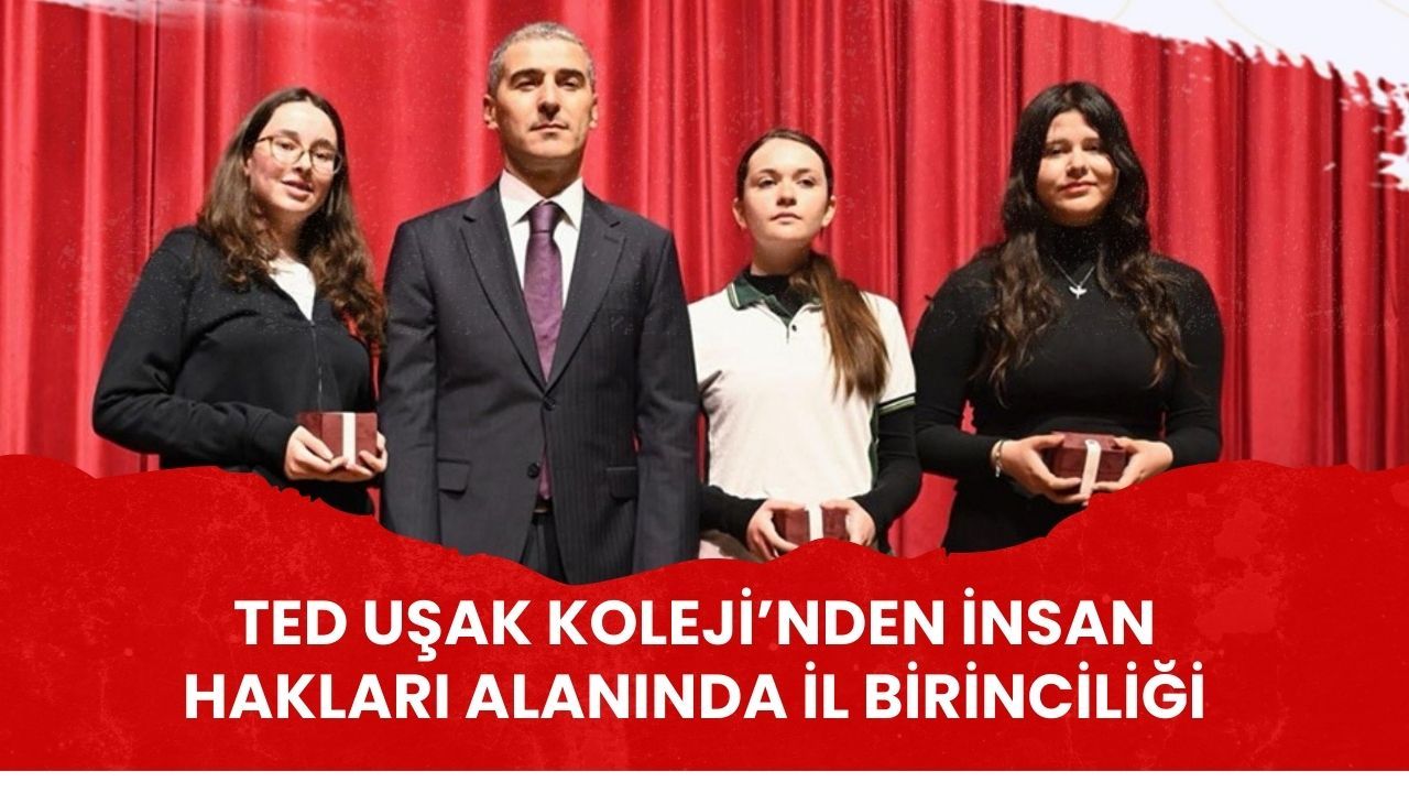 Uşak TED Koleji, İnsan Hakları ve Demokrasi konulu kompozisyon yarışmasında elde edilen önemli bir başarıyla adından söz ettirdi. Okul öğrencilerinden İpek Naz Akçay, kaleme aldığı eseriyle il birincisi olarak büyük bir gurur yaşattı. Dünya İnsan Hakları Günü kapsamında Atatürk Kültür Merkezi’nde düzenlenen program, anlam ve duygu yüklü bir atmosferde gerçekleştirildi. Törene Uşak Valisi Dr. Naci Aktaş, Belediye Başkan Yardımcısı Reyhan Aydın, il protokolü ve İl Milli Eğitim Müdürü Halil Yücel katılım sağladı. Programda, insan hakları, demokrasi, adalet ve eşitlik gibi evrensel değerlerin önemi bir kez daha vurgulandı.