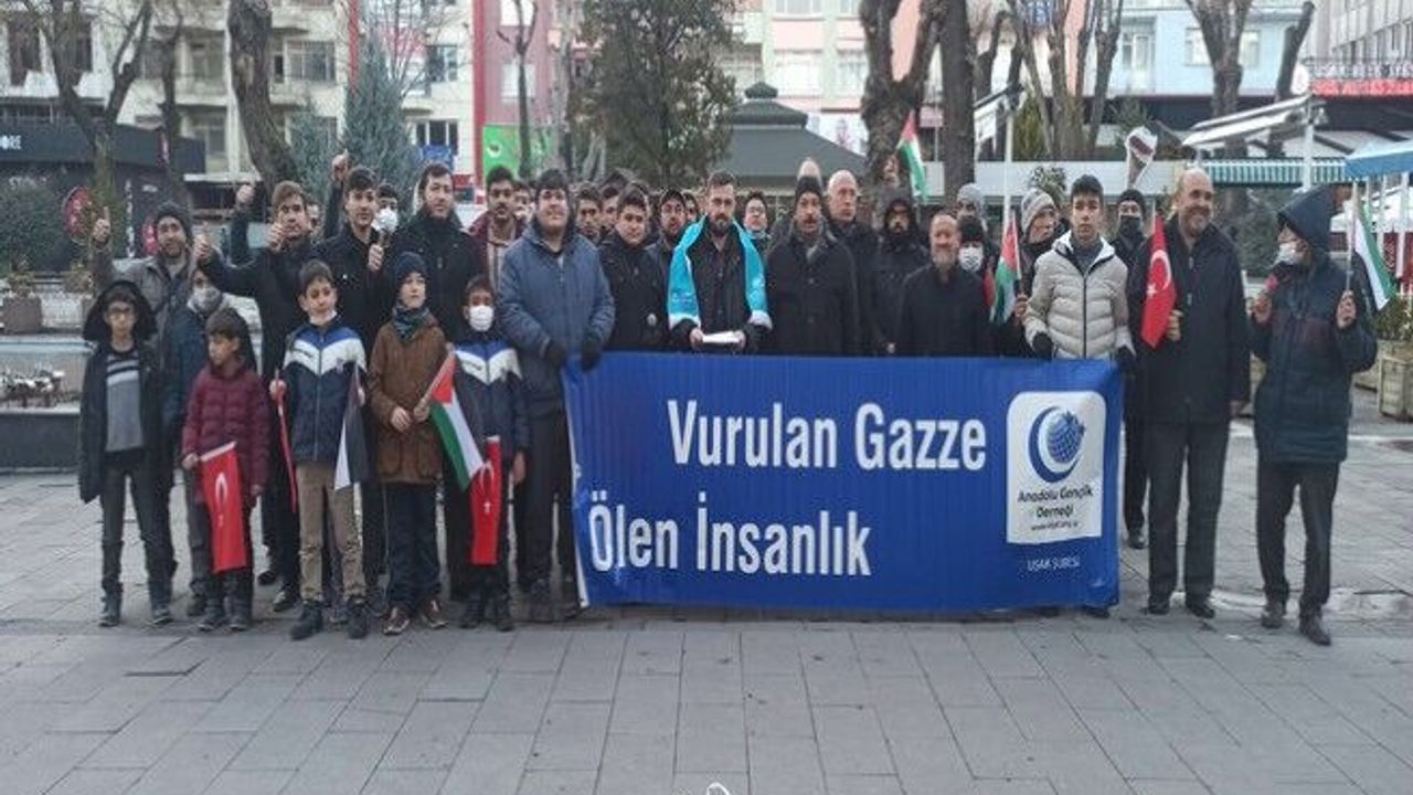 Uşak Anadolu Gençlik Derneği tarafından yapılan açıklamada şu cümlelere yer verildi, “Kıymetli milletimiz, değerli basın mensupları , Zulmün ve terörün tüm yüzlerini gördüğümüz zamanlardan geçmekteyiz. İslam alemi ve mazlum tüm coğrafya her gün ağır bedeller ödemeye ve acılar çekmeye devam ediyor. Yönümüzü nere dönsek bir yakarış, bir feryat yüreklerimizi sızlatıyor. Ve atılması gereken adımlar ne kadar gecikse vebali bir o kadar büyüyor. Haremimiz olan Mescidi Aksa her gün terörist İsrailliler tarafından basılıyor, Müslümanların izzetleri çiğnemeye devam ediyor. Terörist İsrail’in işgalleri sebebiyle Müslüman yurdu her gün kan ağlıyor. Yıllardır süregelen zulümler devam ederken, Terörist İsrail’in başı Yitrak Herzog’un Türkiye’ye gelecek olması Türkiye Müslümanları için ancak bir utanç sebebidir. Müslüman milletimizin yüzyıllardır İslam alemine öncülük ve önderlik yapmışken böyle bir utançla karşı karşıya kalması, şerefli tarihimize kara bir leke olarak sürülecektir.