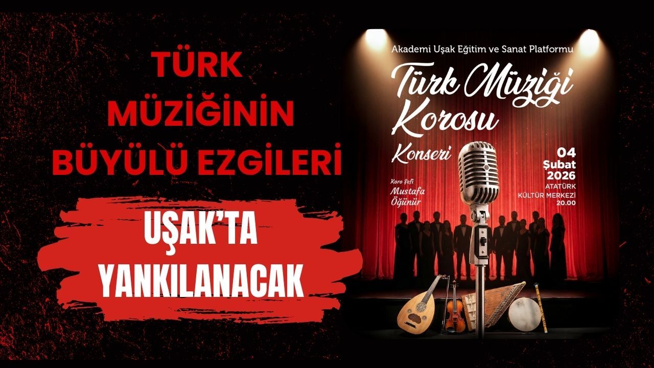 Uşak’ın kültür ve sanat takvimine değer katan bir konser müzikseverlerle buluşmaya hazırlanıyor. Akademi Uşak Eğitim ve Sanat Platformu tarafından düzenlenen Türk Müziği Korosu Konseri, geleneksel ezgilerin zarafetini sahneye taşıyacak. Türk müziğinin seçkin eserlerinin seslendirileceği gecede, koro şefliğini Mustafa Öğünür üstlenecek. Koro, klasik ve sevilen eserlerden oluşan repertuvarıyla dinleyicilere nostalji ve duygu yüklü anlar yaşatmayı hedefliyor.