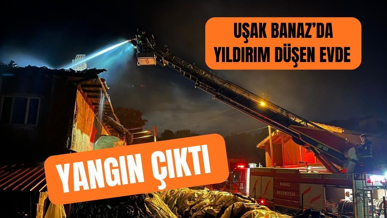 Uşak’ın Banaz ilçesi Muratlı köyünde, yıldırım düşmesi sonucu iki katlı ahşap evin çatısında yangın çıktı. H.İ.S.’ye ait evin çatısına düşen yıldırımın ardından alevler kısa sürede yayıldı. Olayı fark eden çevredekilerin ihbarı üzerine bölgeye Banaz Belediyesi itfaiye ekipleri ile Banaz Orman İşletme Müdürlüğü ekipleri sevk edildi.