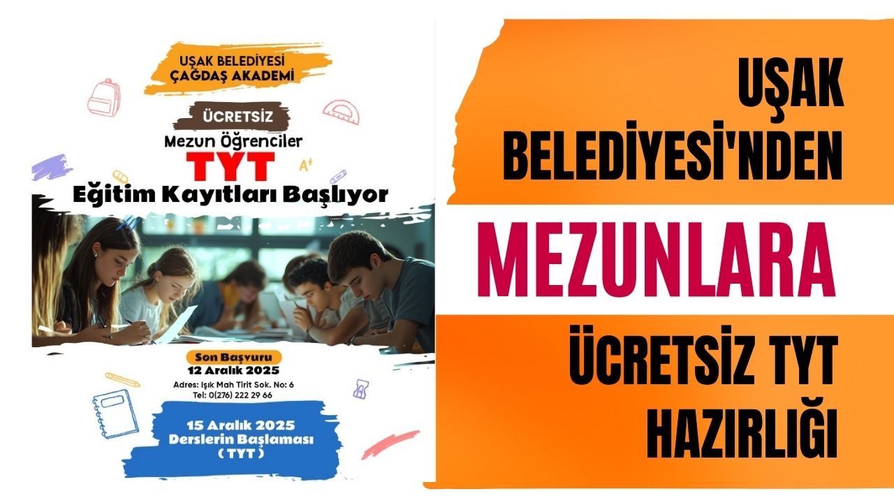 Uşak Belediyesi Çağdaş Akademi, üniversite sınavına yeniden hazırlanan mezun öğrenciler için kapsamlı ve tamamen ücretsiz TYT eğitim programının kayıt sürecini başlattı. Program, gençlerin hedefledikleri bölümlere daha güçlü bir başlangıç yapmasını amaçlıyor.