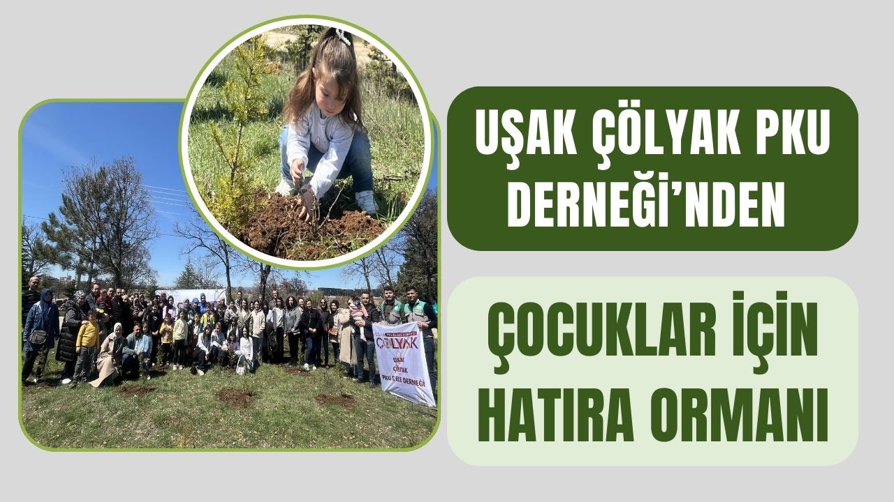 Dernek üyeleri ve gönüllüler, çocuklara daha yeşil bir gelecek bırakmak için Uşak’ta bir hatıra ormanı oluşturdu. “El ele verdik, bir dikili ağacımız olsun dedik!” sloganıyla yola çıkan dernek, çölyak ve fenilketonüri (PKU) hastalığıyla mücadele eden çocukların sağlıklı bir çevrede büyüyebilmeleri için doğaya can verdi.