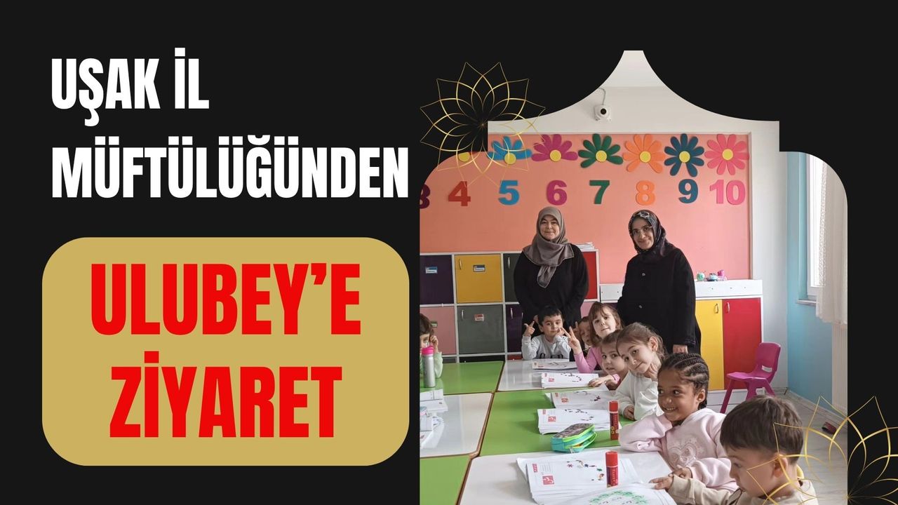 Uşak İl Müftülüğü, “Özel İrşad Programı” kapsamında Ulubey ilçesinde bir dizi ziyaret gerçekleştirdi. İl Müftü Yardımcısı Şeyda Bertan Uysal ile ADRB vaizleri Rukiye Kahya ve Fatma Ebru Sarıca, Ulubey İlçe Müftüsü Harun Gök’e hayırlı olsun ziyaretinde bulundu. Ziyaretin ardından heyet, Ulubey Merkez 4-6 Yaş Kur’an Kursu’nu ziyaret ederek öğreticiler ve öğrencilerle bir araya geldi. Kurs bünyesinde yürütülen eğitim faaliyetleri hakkında bilgi alışverişinde bulunulurken, küçük öğrencilerin Kur’an-ı Kerim’e olan ilgisi memnuniyetle karşılandı.
