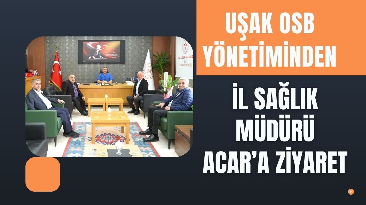 Uşak Organize Sanayi Bölgesi (UOSB) Yönetim Kurulu Başkanı Halil Ağaoğlu, Yönetim Kurulu Üyeleri Fahri Polat, Ali Yangıncı ve Akın Ayan ile birlikte Uşak İl Sağlık Müdürü Doç. Dr. Tarık Acar’ı makamında ziyaret etti. Nezaket ziyaretinde, Uşak’ın sağlık altyapısına ve sanayi bölgesindeki sağlık hizmetlerine dair görüş alışverişinde bulunuldu. Ziyaret dolayısıyla memnuniyetini dile getiren İl Sağlık Müdürü Acar, sanayi kuruluşlarıyla yapılacak iş birliklerinin hem çalışan sağlığı hem de toplum sağlığı açısından önem taşıdığını ifade etti.