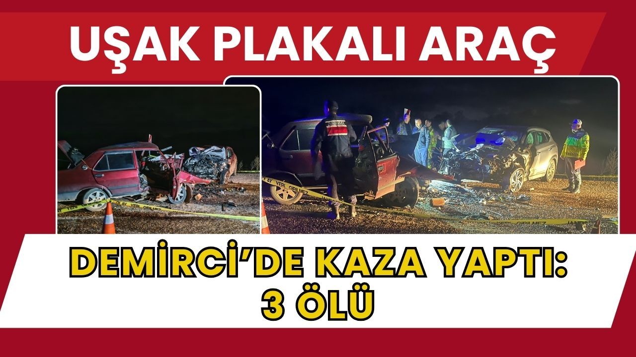 Demirci–Selendi karayolunda meydana gelen kazada, 64 AU 105 plakalı otomobil ile karşı yönden gelen 06 EUV 371 plakalı otomobil çarpıştı. Kazayı görenlerin ihbarı üzerine bölgeye sağlık, itfaiye ve jandarma ekipleri yönlendirildi. Yapılan ilk incelemede, Uşak plakalı otomobilde bulunan sürücü Soner Kapucu ile araçtaki Mehmet Kapucu’nun olay yerinde hayatını kaybettiği belirlendi.
