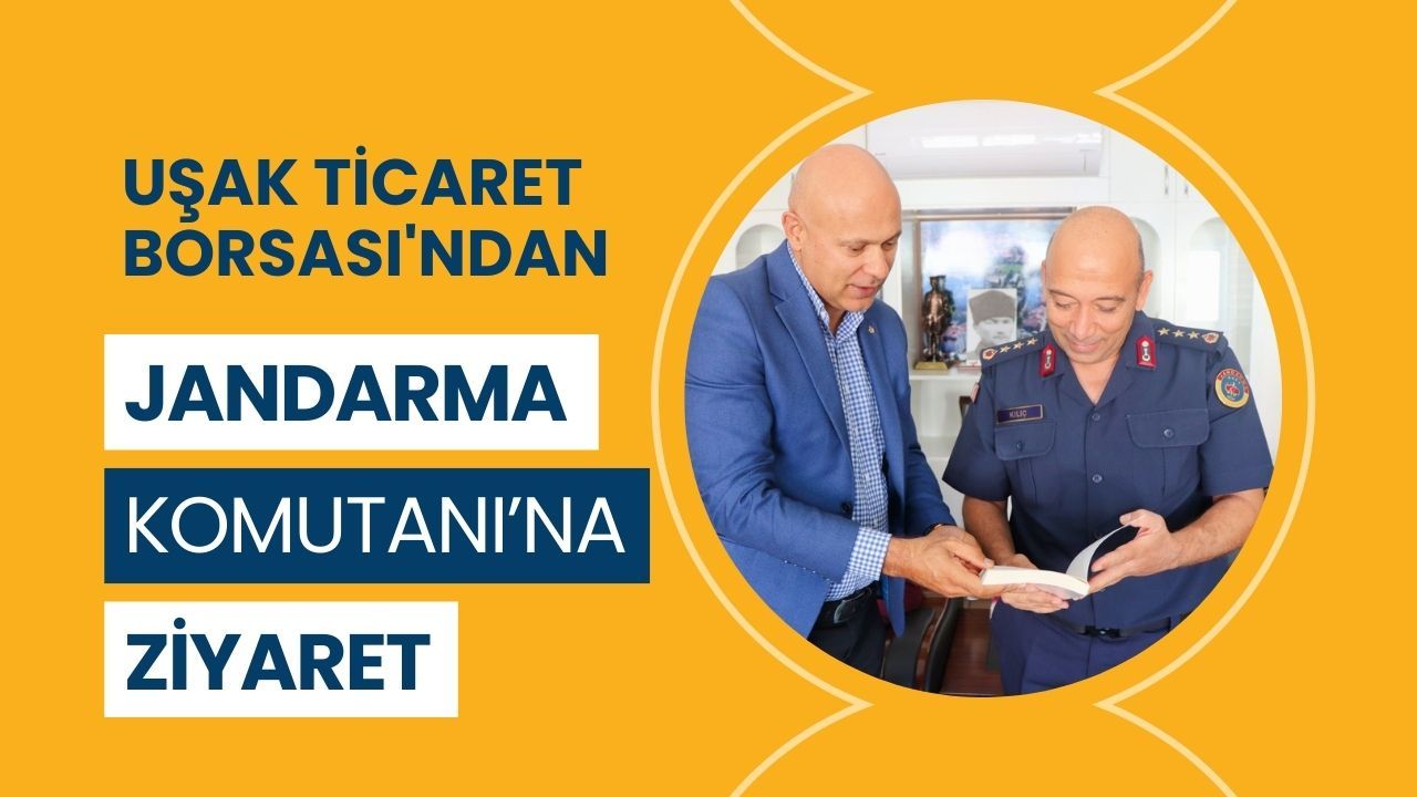 Uşak Ticaret Borsası Yönetim Kurulu Başkanı Mustafa Sezer ve beraberindeki yönetim kurulu üyeleri, Uşak İl Jandarma Komutanlığı görevine atanan Jandarma Kıdemli Albay Özgür Kılıç’a nezaket ziyaretinde bulundu. Gerçekleşen ziyarette, Başkan Sezer yeni görevinde Albay Kılıç’a başarı temennilerini iletirken, Uşak’ın güvenliği ve toplumsal huzuru için sürdürülen çalışmalara yönelik karşılıklı görüş alışverişinde bulunuldu. Ziyaret sonunda, İl Jandarma Komutanı Özgür Kılıç, nazik ziyaretlerinden dolayı Başkan Sezer ve heyetine teşekkür etti.