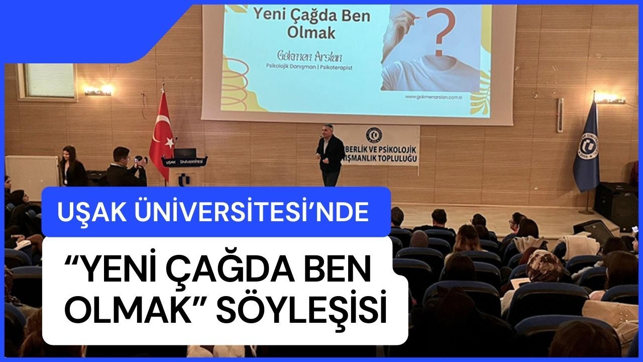 Uşak Üniversitesi Rehberlik ve Psikolojik Danışmanlık Topluluğu tarafından düzenlenen “Yeni Çağda Ben Olmak” başlıklı söyleşi, Mustafa Kemal Paşa Amfisinde geniş katılımla gerçekleştirildi. Programda, Burdur Mehmet Akif Ersoy Üniversitesi’nden Prof. Dr. Gökmen Arslan konuşmacı olarak yer aldı. Etkinliğe çok sayıda akademisyen ve öğrenci ilgi gösterdi.
