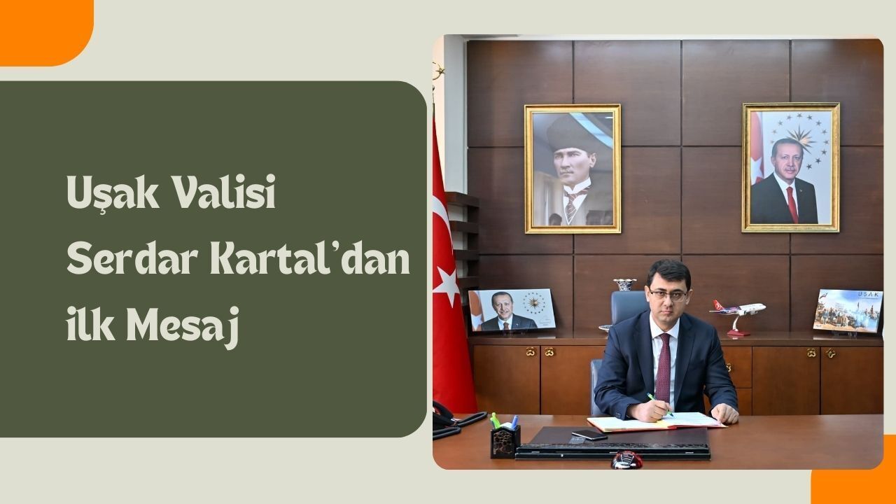 Cumhurbaşkanlığı kararıyla Uşak Valiliği görevine başlayan Serdar Kartal, göreve başlamasının ardından Uşaklılara hitaben kapsamlı bir mesaj yayımladı. Vali Kartal, mesajında Cumhurbaşkanı Recep Tayyip Erdoğan ve İçişleri Bakanı Mustafa Çiftçi’ye teşekkür ederek, Uşak’ta görev yapacak olmaktan duyduğu memnuniyeti dile getirdi.