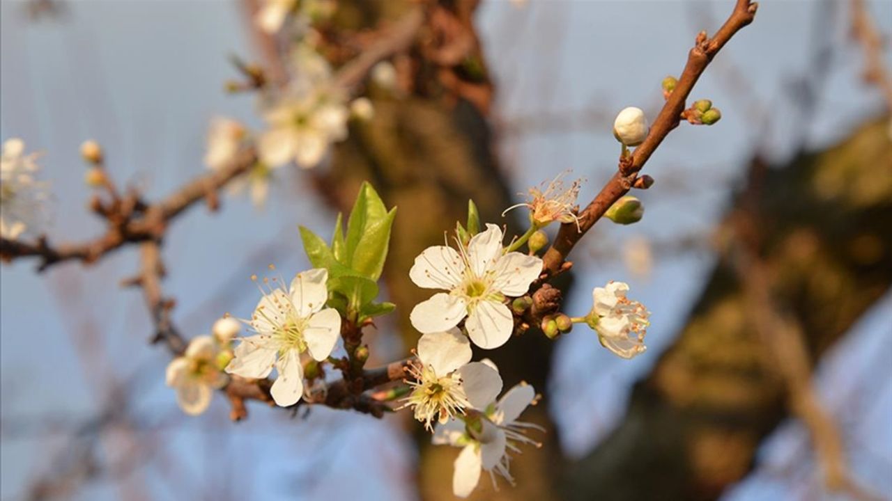 Uşak ve Manisa'da hava sıcaklıklarının mevsim normallerinin üzerinde seyretmesi nedeniyle bazı erik ağaçları çiçek açtı.