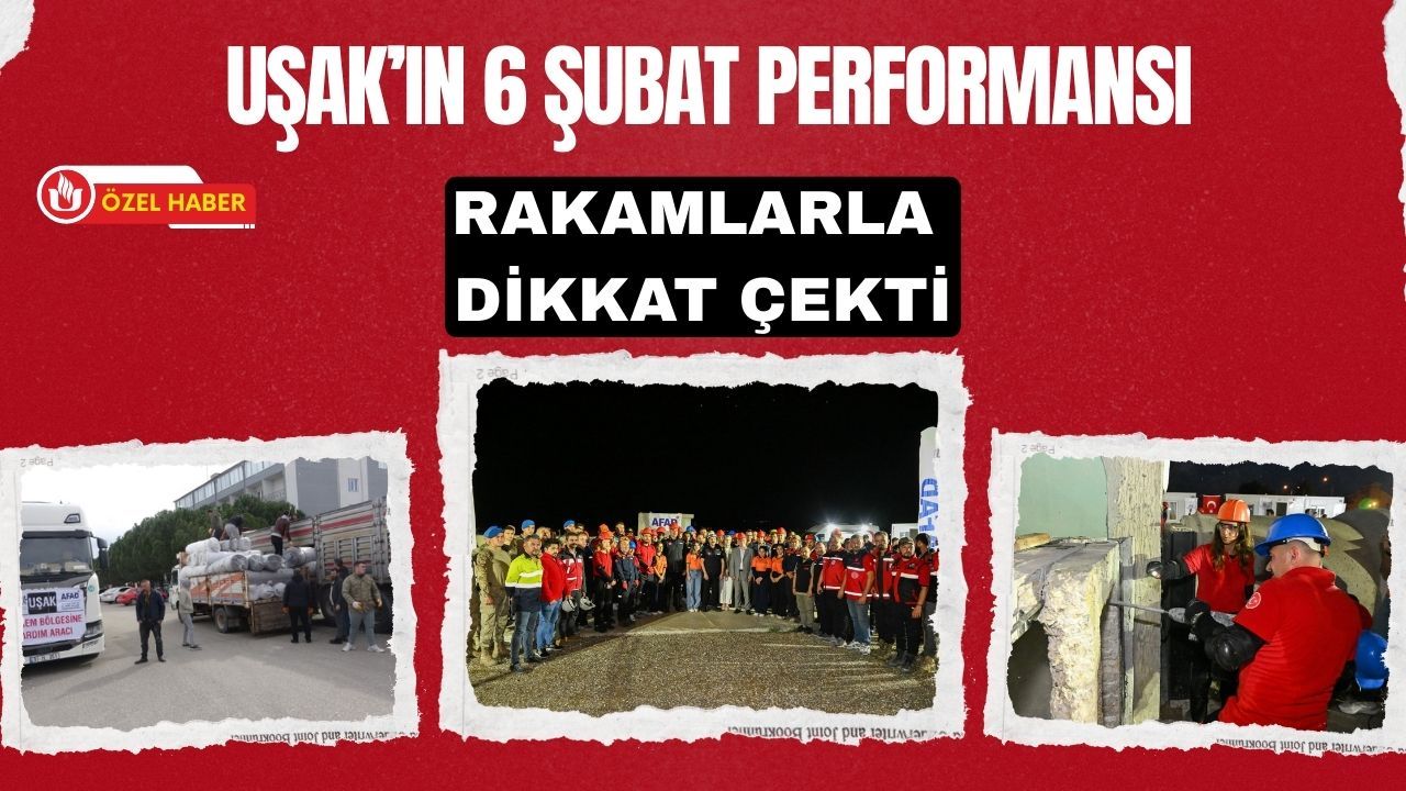 Depremin hemen ardından başlatılan organizasyon kapsamında, Uşak’tan 1 milyon 341 bin 768 battaniye ile birlikte 1 milyon 304 bin parça muhtelif yardım malzemesi deprem bölgesine ulaştırıldı. Hijyen setleri, kıyafet ve temel ihtiyaçlardan oluşan yardımlar, 254 tır ve kamyon aracılığıyla sevk edildi. Ayrıca ilk aşamada 200 bin battaniye bölgeye gönderildi.