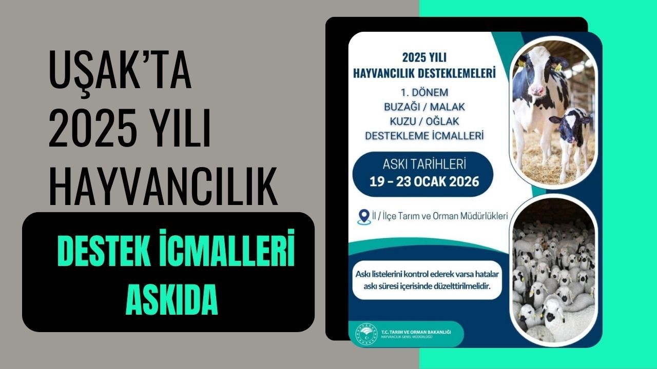 Uşak’ta hayvancılık faaliyetlerini sürdüren üreticileri ilgilendiren 2025 yılı destekleme sürecinde önemli bir aşamaya geçildi. Uşak Tarım ve Orman İl Müdürlüğü tarafından yapılan duyuruya göre, 1. dönem buzağı, malak, kuzu ve oğlak destekleme icmalleri askıya çıkarıldı.