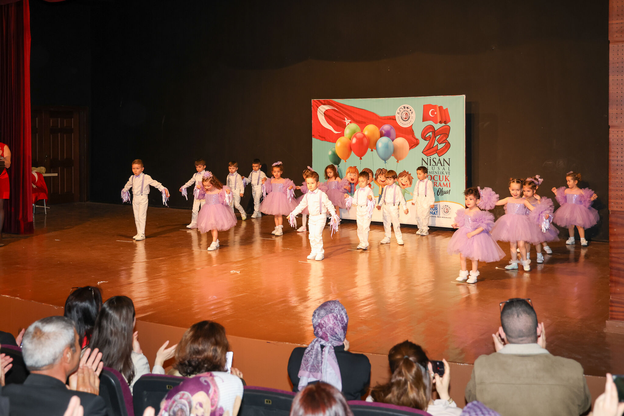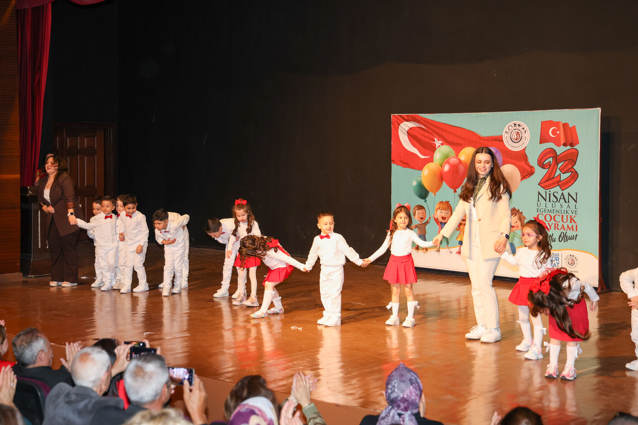 Uşak’ta 23 Nisan Ulusal Egemenlik ve Çocuk Bayramı etkinlikleri, çocukların sahne performanslarıyla taçlandı. Uşak Belediyesi Kültür ve Sosyal İşler Müdürlüğü bünyesinde hizmet veren Narin ve Elma Şekeri Gündüz Bakımevi öğrencileri, Atatürk Kültür Merkezi’nde düzenlenen programda sahne aldı.