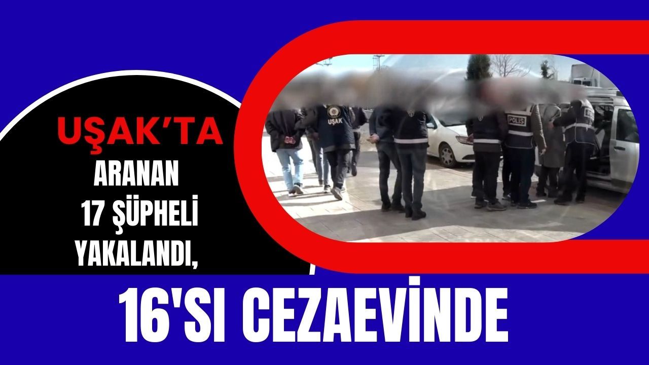 Uşak Emniyet Müdürlüğü Asayiş Şube Müdürlüğü ekipleri, kent genelinde aranan şahıslara yönelik yürüttüğü çalışmalar kapsamında önemli bir sonuca ulaştı. Farklı suçlardan haklarında yakalama kararı bulunan 17 şüpheli, düzenlenen operasyonlarla yakalanarak gözaltına alındı.