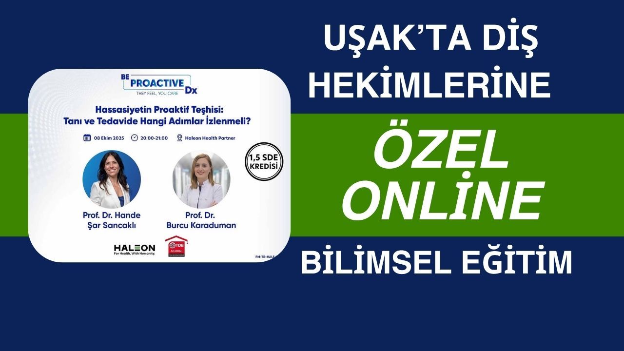 Uşak Diş Hekimleri Odası, meslek içi eğitim çalışmalarına hız kesmeden devam ediyor. Türk Dişhekimleri Birliği ve TDB Akademi iş birliğiyle 8 Ekim 2025 Çarşamba akşamı düzenlenecek online bilimsel etkinlikte, “Hassasiyetin Proaktif Teşhisi: Tanı ve Tedavide Hangi Adımlar İzlenmeli?” konusu ele alınacak. Prof. Dr. Hande Şar Sancaklı ve Prof. Dr. Burcu Karaduman’ın konuşmacı olarak katılacağı program saat 20.00’de başlayacak ve 21.00’de sona erecek. Toplam 1 saat sürecek olan oturum, TDB Sürekli Diş Hekimliği Eğitimi Yürütme Kurulu (SDEYK) tarafından 1,5 kredi ile kredilendirilecek.