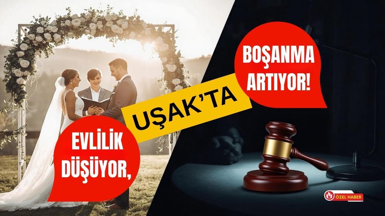 (ÖZEL HABER) - Uşak’ta aile yapısına dair çarpıcı tablo ortaya çıktı. 2021-2025 dönemini kapsayan Türkiye İstatistik Kurumu’nun (TÜİK) resmi verilerine göre kentte evlilik sayıları düşüş eğilimine girerken, boşanmalarda yeniden artış yaşandı. Özellikle evlilik süresi 16 yılı aşan çiftlerde boşanma sayısının yüksekliği dikkat çekti. Uşak’ta 2021 yılında 2 bin 665 olan evlenme sayısı, 2025’te 2 bin 443’e geriledi. Son dört yılda toplam 222 evlilik daha az gerçekleşti. Aynı dönemde kaba evlenme hızı da binde 7,18’den binde 6,52’ye düştü. Bu oran Türkiye ortalamasının (binde 6,43) üzerinde olsa da, kentte evlenme eğiliminin zayıfladığı görülüyor.
