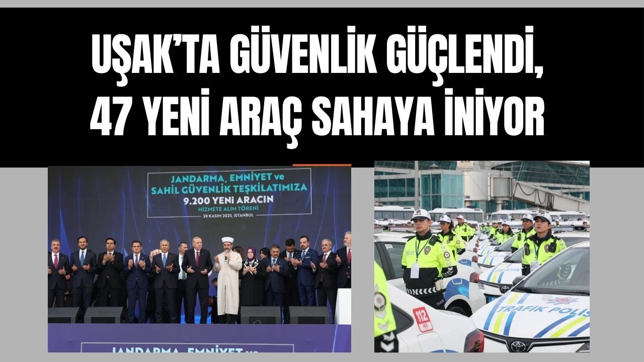 Törende yapılan açıklamalara göre, Uşak’ın asayiş, trafik ve genel güvenlik hizmetlerini güçlendirmek amacıyla Emniyet Teşkilatı’na 30, Jandarma Teşkilatı’na ise 17 araç olmak üzere toplam 47 hizmet aracı teslim edildi. Yeni araçların il merkezi ve kırsal bölgelerde yürütülen denetimlerde, olaylara hızlı müdahalede ve devriye faaliyetlerinde önemli katkı sağlaması bekleniyor.