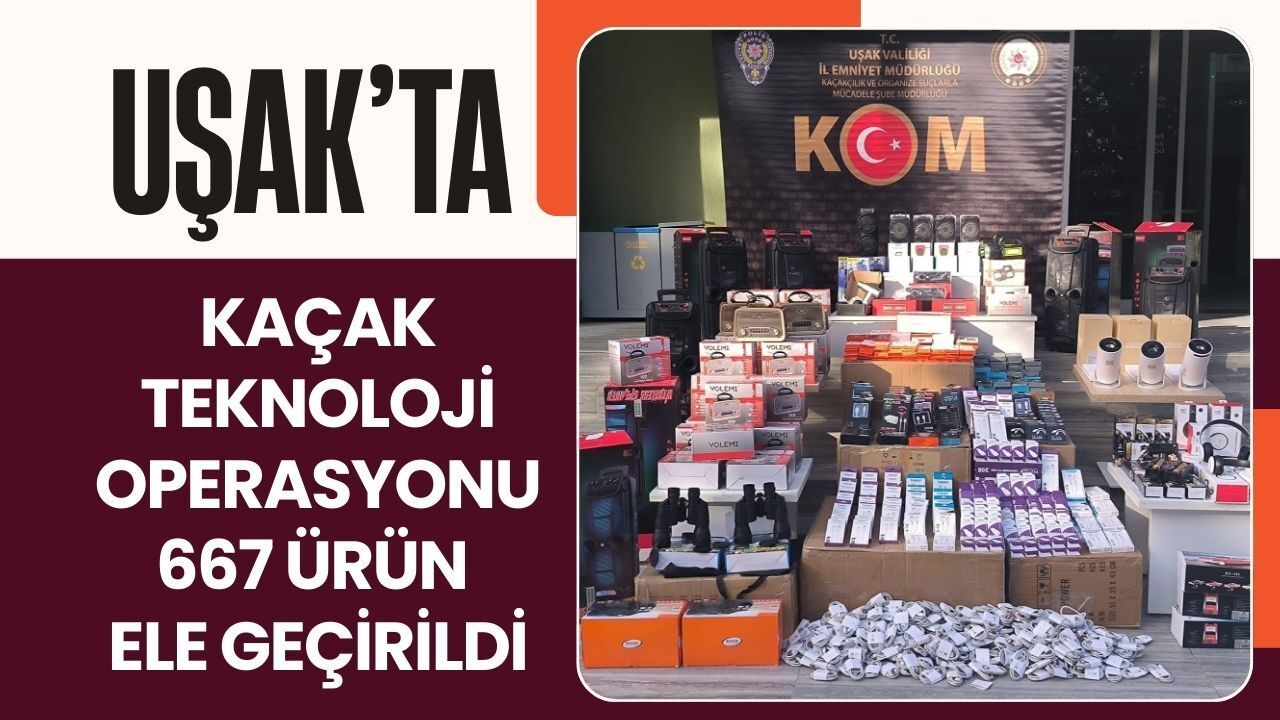 Uşak’ta kaçakçılıkla mücadele kapsamında yürütülen çalışmalar sonucu düzenlenen operasyonda çok sayıda kaçak teknolojik ürün ele geçirildi. İl merkezinde kaçak ürünlerin piyasaya sürüldüğünün tespit edilmesi üzerine ekipler harekete geçti. Yapılan saha çalışmaları sonucunda 5 Mart 2026 tarihinde adli mercilerden alınan arama kararına istinaden 1 ikamet ve 1 iş yerinde arama gerçekleştirildi. Yapılan aramalarda toplam 667 parça kaçak teknolojik ürün ele geçirildi.