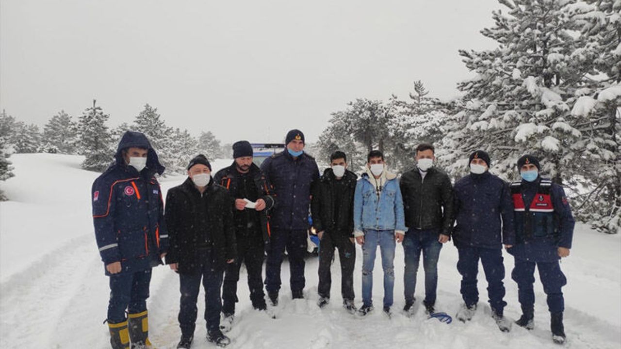 UŞAK'TA KARDA MAHSUR KALAN GENÇLERİ JANDARMA VE AFAD KURTARDI