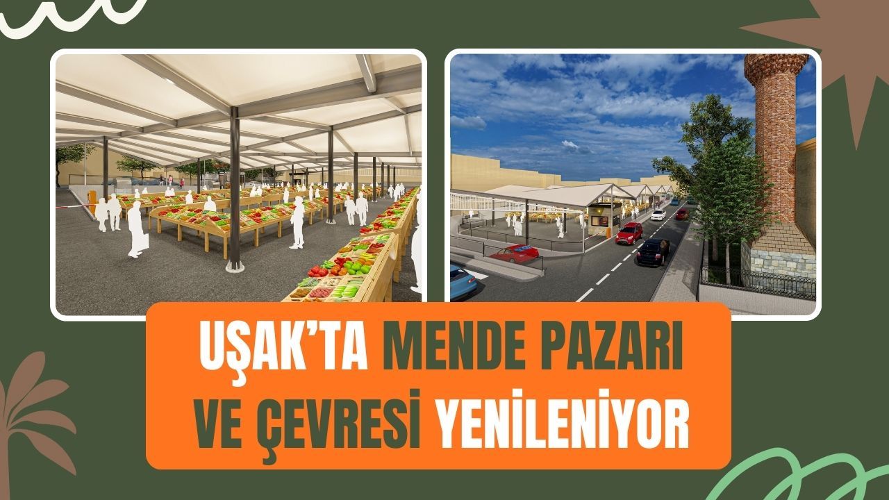 Kentsel yenilemenin ikinci ayağını oluşturan Mende Pazarı Çevre Düzenlemesi Projesi yaklaşık 7.600 metrekarelik geniş bir alanı kapsıyor. Uşak’ın en eski ticaret akslarından biri olan bölge; geleneksel zanaat izlerini yaşatan sokaklarıyla, yeniden ele alınacak özgün bir kent mekânına dönüşüyor.